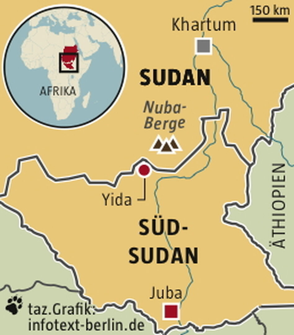 In den letzten Wochen kommen täglich neue Flüchtlinge aus Nuba in Yida an. Aber sie können dort nicht bleiben. Das UN-Flüchtlingshilfswerk UNHCR will Yida schließen und liefert keine Nahrungsmittelhilfe mehr, damit die Flüchtlinge weggehen. Yida liegt kaum zehn Kilometer von der Grenze zwischen dem Südsudan und dem Sudan – UN-Richtlinien verlangen, dass Lager mindestens 50 Kilometer entfernt von einer Grenze liegen sollen.