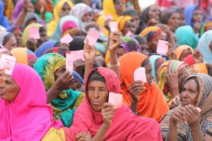 Der Projektkoordinator des Hilfswerks Action Aid will hier Lebensmittel verteilen. Als Ahmed sieht, wie Hunderte von Frauen in bunten Kleidern und Schleiern aus allen Richtungen angelaufen kommen, blitzt Panik in seinen Augen auf. „Wir haben mit 250 Familien gerechnet. Das sind mindestens 500 Frauen“, seufzt er. „Wir haben zu wenig Lebensmittelkarten und Nahrung.“